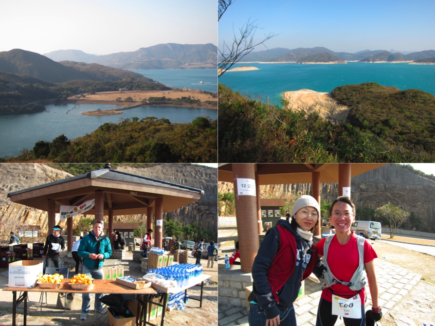 Our spirits were high although we were both very tired and getting a little sleepy. After 2 hours inside the trail, we came to road. There were 2 marshallers and one of them pointed to us to use the overhead bridge! We followed the instructions. Upon coming down from the overhead bridge, we saw this path with a big red/white tape across that tie onto a signboard (or lamp post). We presumed that it meant we had to go straight instead of going into the small path. After walking about 1 1/2 hours, we noticed that we didn't see any other runners. Not that we saw any runners while inside the trail but somehow, we had this hunch that we were on the wrong track since we should be going into some trail instead of along a main road. At the sight of a Shell petrol station, we went inside to enquire if the road would lead us to this damn. (Luckily, Chantel carried with her a paper of the names of all check-points and the name of CP8 was Shing Mun Dam. Unfortunately, both uncles manning the petrol station were not sure although one of them pointed to us that if we continue for another hour or so, we would come to a dam whose name sounded like Shing Mun Dam.