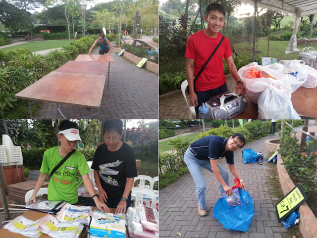 I decided to use only 4 of the aid stations this time round. The problem with aid station with drop bag support was that you tend to stay longer than you actually required. Since the distance between the aid station was mostly 10km~12km, I decided to drop my special drinks and food at CP2 (21.5km), CP4 (39km), CP5/6 (50.5/65km and 95km/110km), and the u-turn point at CP8 (80.94km). I also decided what items I wanted in my drop bag. I.e. not to put too much stuff so that I don't need to think too long what I need. Running Guild was already setting up shop at MacRitchie when I reached at around 6pm. I collected my BIB and went to a corner and pack my drop bags, having just bought my items from NTUC in the afternoon. Then I deposit my bags at the stated point - which was super fast and easy. I saw Joe, who like me, also DNF in last year's Craze Ultra. Then I waited for Philip and his students to give me the pill as part of his research thesis.